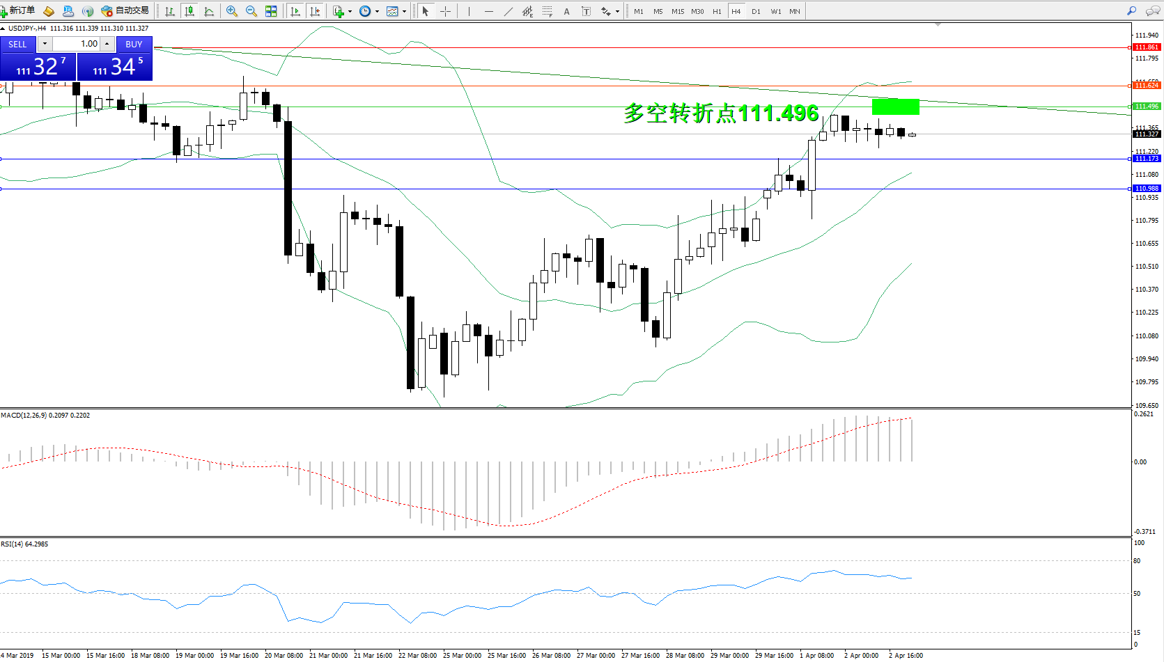 路透社援引一位直接了解此事的日本政府消息人士的话说,日本和美国可能于415日至16日在华盛顿举行第一轮贸易谈判。今天早些时候,日本经济大臣茂木健二(Motegi)通知市场,日本与美国的首轮贸易谈判定于4月举行。美元兑日元窄幅波动,大华银行表示,美元兑日元料进一步整固。美元兑日元将保持“横向交易”,美元兑日元准备挑战上个月高点112.12水平。美元兑日元走高的可能性并不高,但只要在这几天内不跌破110.80水平,则上涨的可能性将会大增。