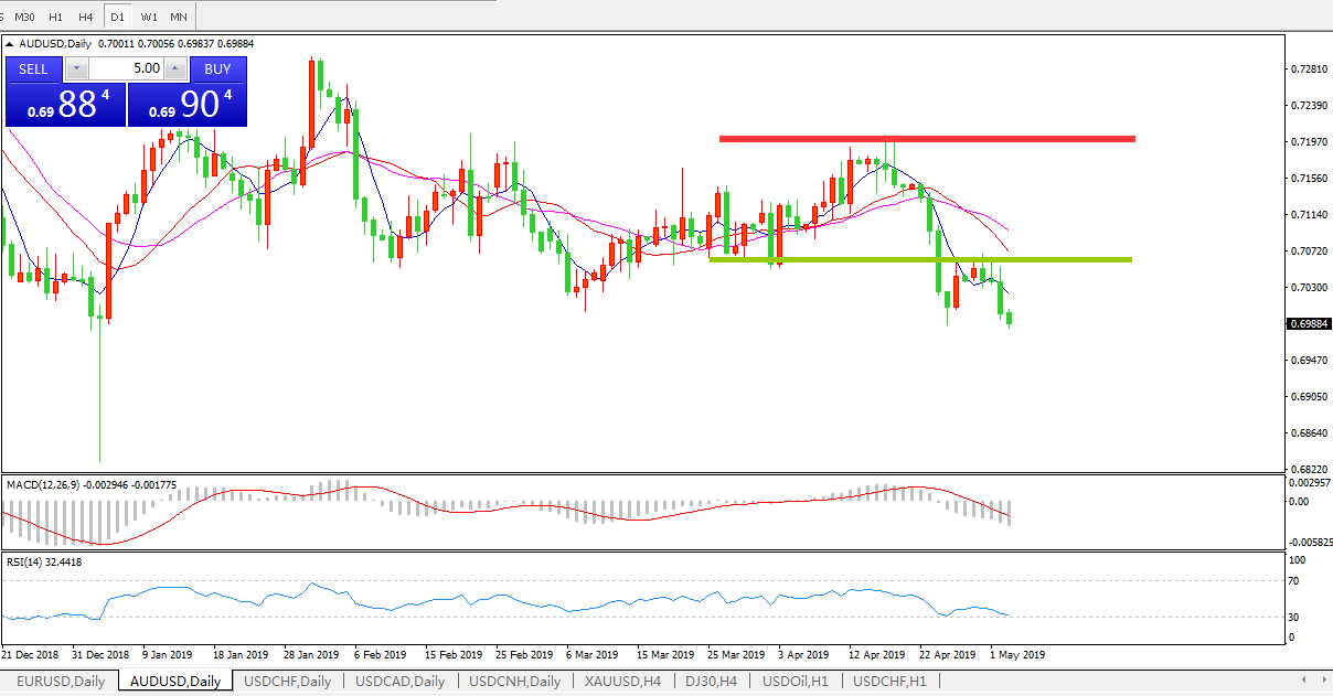 技术性收低于0.7关口,澳美存进一步下行空间