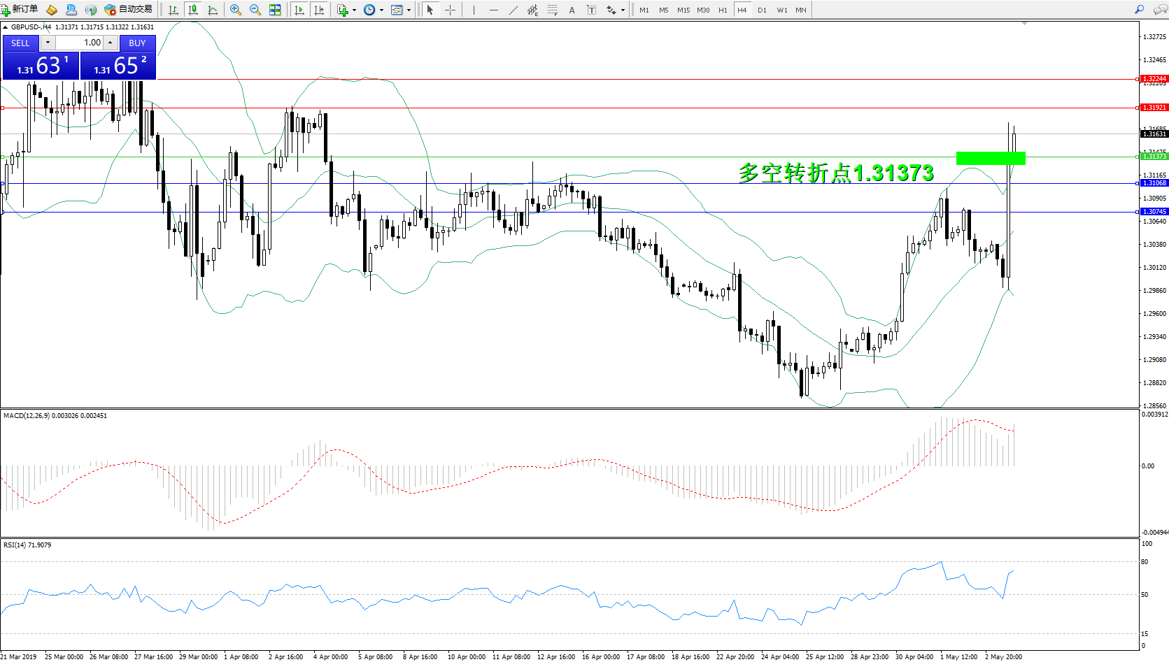 交易策略:1.31373上方看涨,目标1.31921、1.32244