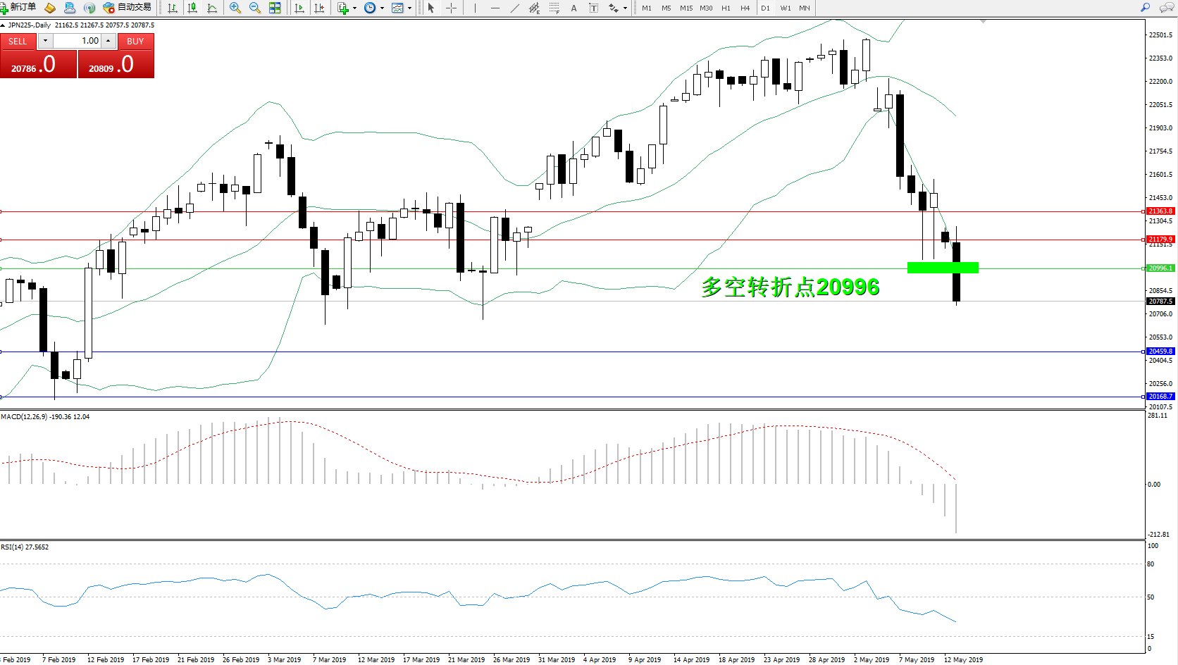 日经指数周一收跌,在中美贸易摩擦升级之后,多数景气循环板块失守,美国股指期货下跌也打压人气。日经指数N225 收跌0.7%至21,191.28点,为3月28日以来最低收位。虽然股指下滑,但去年特朗普首次对中国输美商品加征关税时跌幅更大。中国像以往一样快速报复是一个明确的信号,表明他们不会接受摆布,市场本期待中国更友好一些,甚至期待对中国产生些许自满情绪。有趣的是周末没有行动,而是在周一早上,刚好赶上市场开盘。