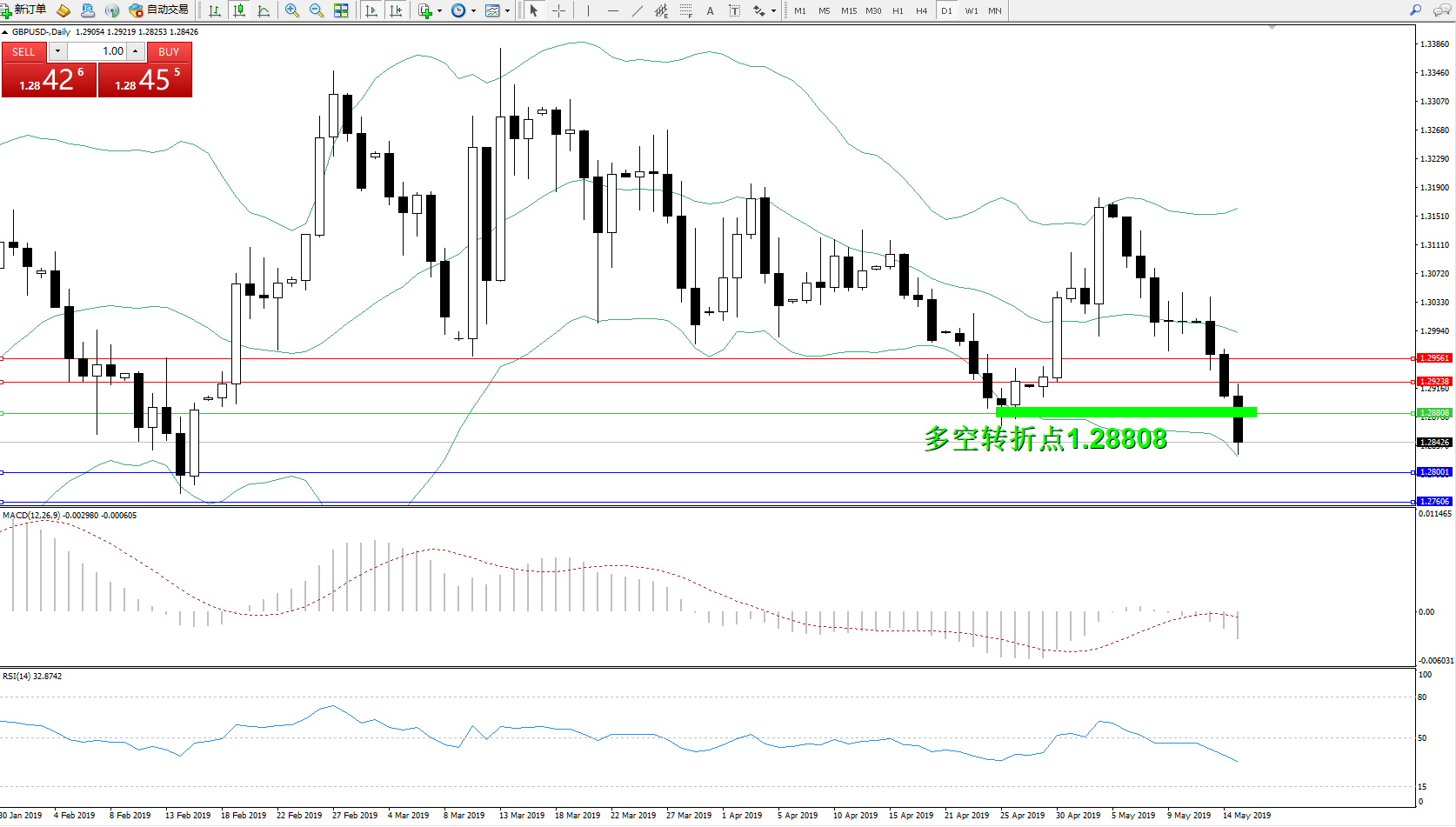 英镑兑美元昨日持续走低,并刷新三个月低点于1.2835,因跨党脱欧谈判貌似“毫无进展,加剧了市场对于英镑的抛售。此外保守党在欧洲议会选举中可能遭遇惨败的前景和美元的相对强势也进一步施压英镑。尽管近期英国的经济数据有所好转,尤其是失业率方面此前一度下降至3.8%,为逾40年来的最低水平。尽管如此,市场对于英国的经济数据反映平淡,因市场更多的关注脱欧局势的进展。英国议会下院计划在6月3日至7日那一周就首相特雷莎·梅提交的脱欧法案进行第四度也很可能是最后一次表决,一旦再失利,或意味着梅姨政治生涯的终结。而梅姨的北爱尔兰统一民主党盟友日内也对此表示失望,称协议内容如欲闯关成功,需要进行“大面积改动”。