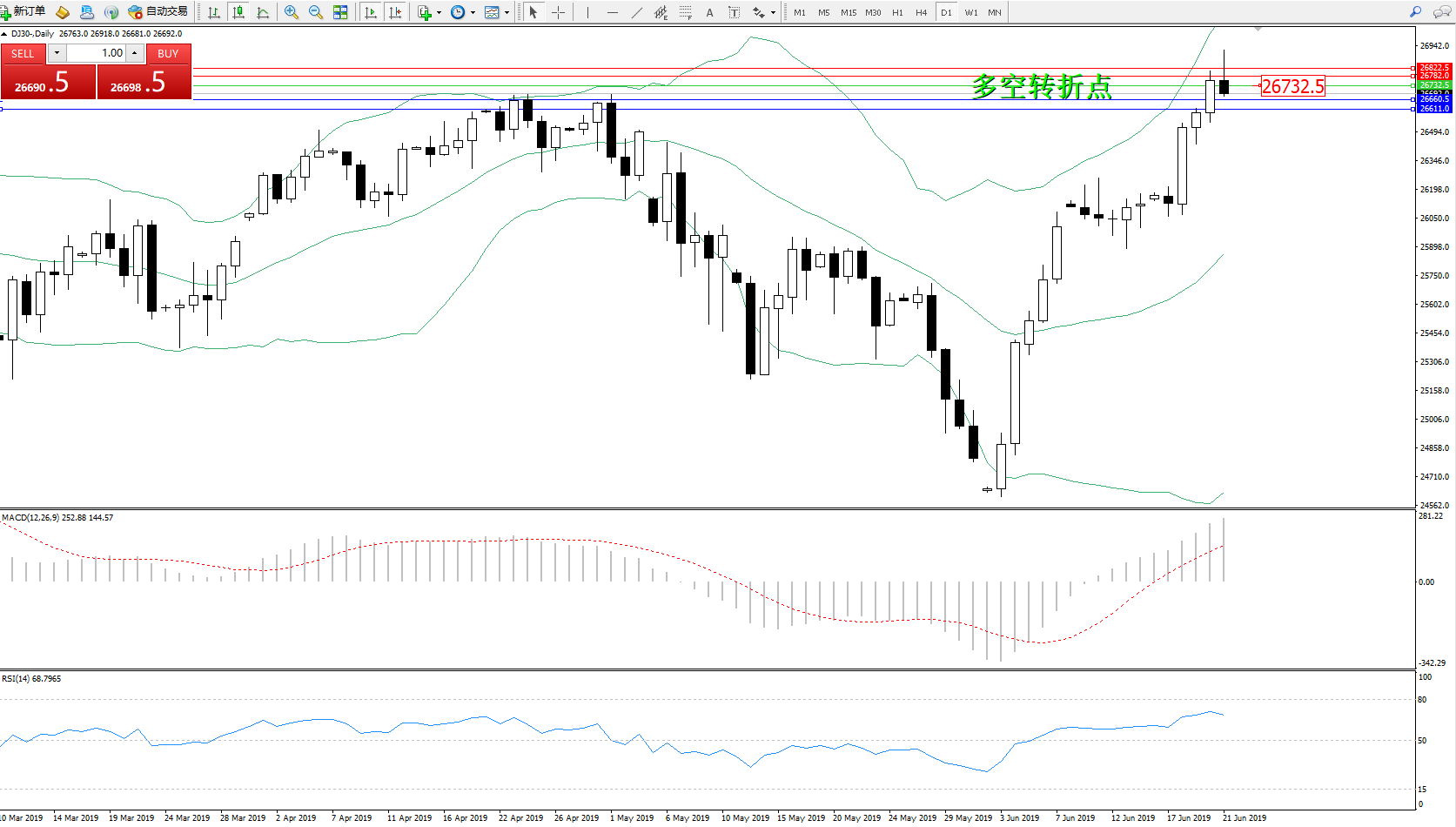 道琼斯指数收跌33.80点,跌幅0.13%,报26719.33点。美国5月成屋销售数据出炉后,美元短暂上涨,这一令人鼓舞的消息抵消IHS Markit数据的影响;该数据显示,美国6月制造业采购经理人指数(PMI)初值降至20099月以来最疲弱水平,服务业PMI下滑至20162月以来最低水平。周五公布的美国经济数据并未改变交易商对美联储最早将于7月下调主要借贷利率的预期。道明证券前瞻纽约联储主席威廉姆斯讲话:北京时间625(周二)20:45,纽约联储主席威廉姆斯将在一场金融论坛致开幕词;预计,威廉姆斯不会偏离上周美联储会议纪要鸽派的立场,但此次讲话也有可能为美联储作出转变提供更多的信息;届时,威廉姆斯可能会透露自己在点阵图方面的态度。