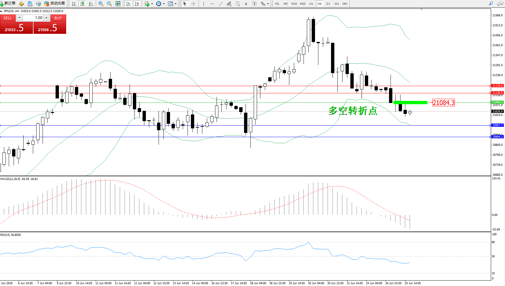 日经225指数6月25日(周二)收盘下跌120.99点,跌幅0.57%,报21165.00点。其中造纸业和纸浆、铁路和客车和房地产等下跌的板块带领股指走低。外围市况弱势震荡,全球宽松预期明显升温,多项经济数据已反映出美国经济正逐步放缓,亦有投资者忧虑将步入衰退。美联储主席鲍威尔警告经济下行风险增加,鲍威尔重申降息理由增多,但没有发出即将降息的信号。市场认为鲍威尔仍未确认下月会降息,加上美联储布拉德表示7月降息50个基点会过头,也令一些投资者失望。此外,美国6月消费者信心指数表现疲弱,加深投资者对经济前景的忧虑。