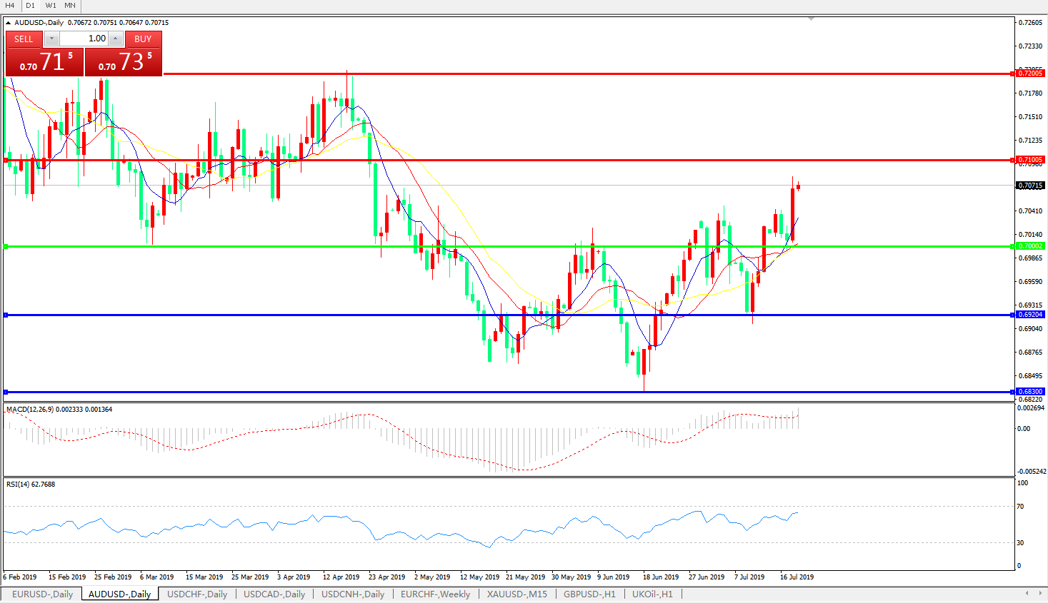 交易策略:0.7000上方看涨,目标0.7100、0.7200