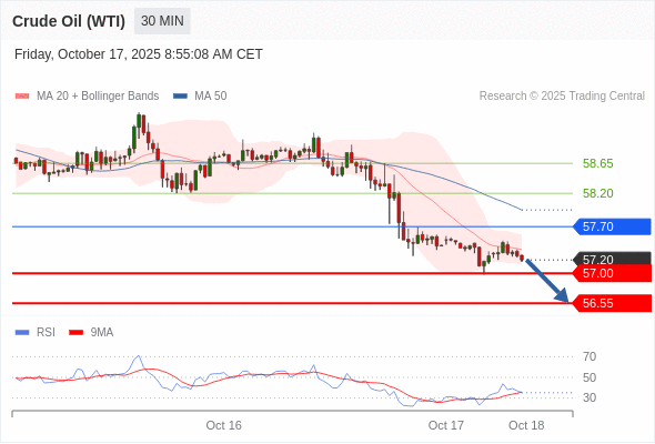 在 57.70 之下,看跌,目标价位为 57.00 ,然后为 56.55 。