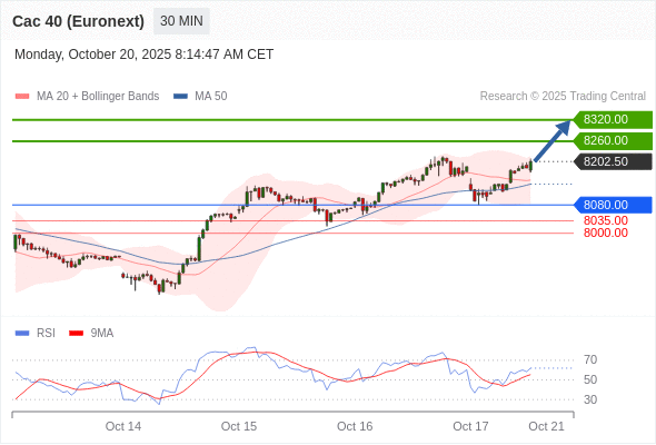 法国CAC指数期货 (Euronext) (V5) 当日内: 看涨。
