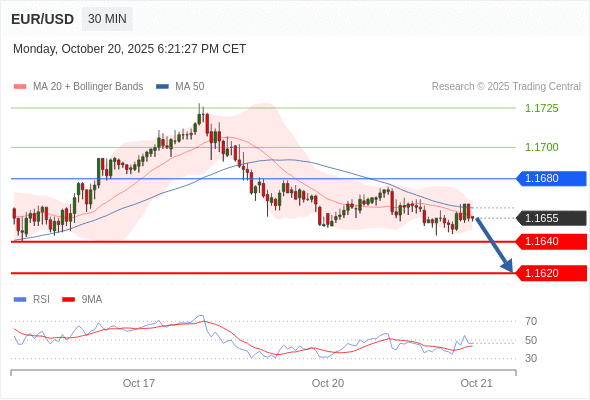 在 1.1680 之下,看跌,目标价位为 1.1640 ,然后为 1.1620 。