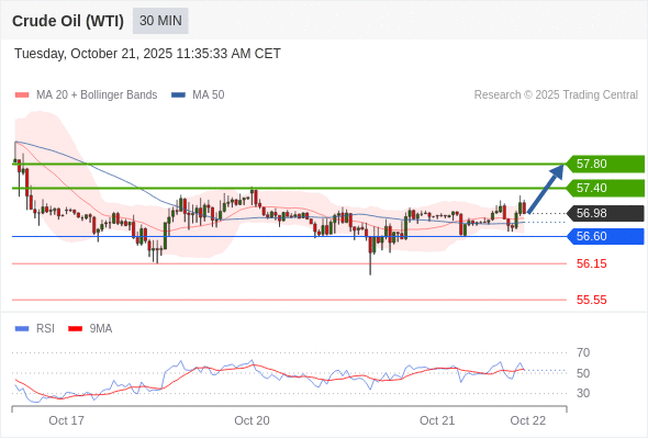 在 56.60 之上,看涨,目标价位为 57.40 ,然后为 57.80 。