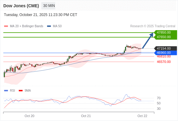 交易策略: 在 46960.00 之上,看涨,目标价位为 47650.00 ,然后为 47850.00 。