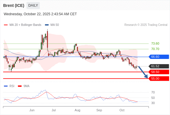 在 66.60 之下,看跌,目标价位为 58.50 ,然后为 55.00 。