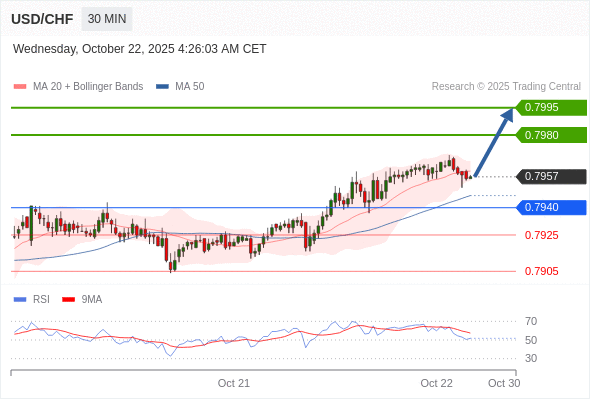 在 0.7940 之上,看涨,目标价位为 0.7980 ,然后为 0.7995 。