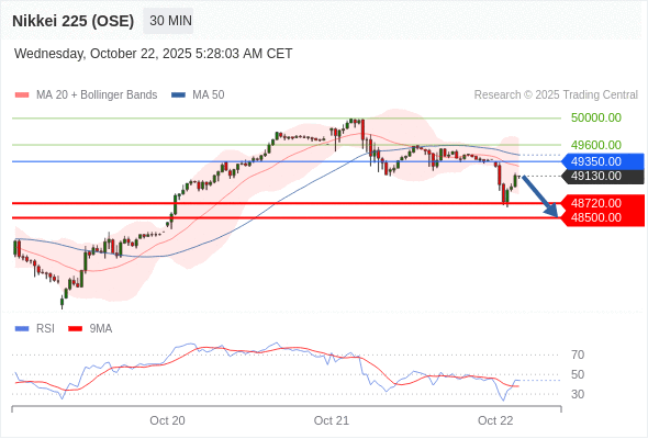 在 49350.00 之下,看跌,目标价位为 48720.00 ,然后为 48500.00 。