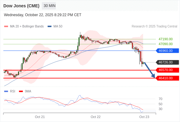 在 46960.00 之下,看跌,目标价位为 46570.00 ,然后为 46410.00 。