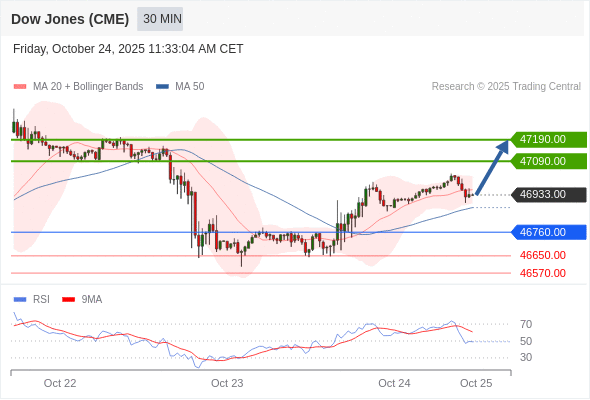 在 46760.00 之上,看涨,目标价位为 47090.00 ,然后为 47190.00 。