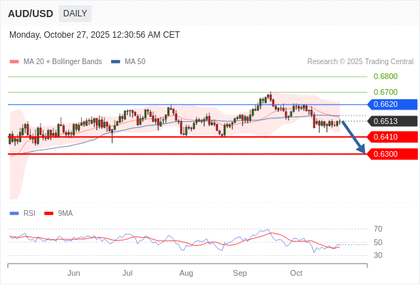 交易策略: 在 0.6620 之下,看跌,目标价位为 0.6410 ,然后为 0.6300 。