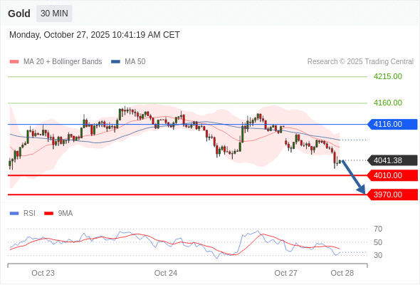 在 4116.00 之下,看跌,目标价位为 4010.00 ,然后为 3970.00 。