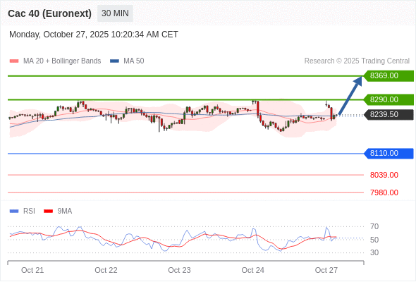 在 8110.00 之上,看涨,目标价位为 8290.00 ,然后为 8369.00 。