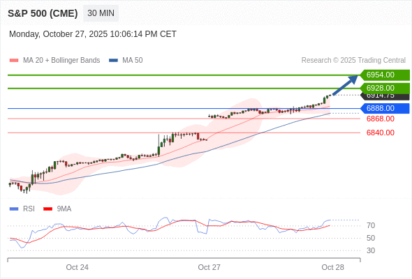 在 6888.00 之上,看涨,目标价位为 6928.00 ,然后为 6954.00 。