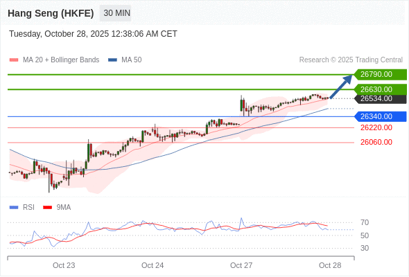 交易策略: 在 26340.00 之上,看涨,目标价位为 26630.00 ,然后为 26790.00 。