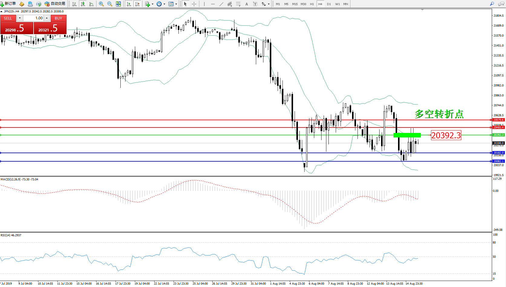 日经225指数8月15日(周四)收盘下跌265.63点,跌幅1.29%,报20389.50点。疲软的亚欧经济数据令人担忧全球经济放缓;全球经济出现令人担忧的迹象,日本30年期国债收益率跌至0.145%,创2016年7月以来新低。20年期国债收益率跌至0.065%,为2016年7月以来新低。日本经济再生大臣茂木敏充:将关注金融市场动向对经济的影响。上调销售税的计划没有改变。