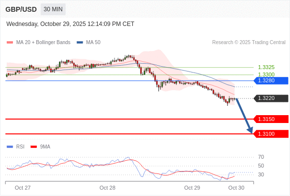 在 1.3280 之下,看跌,目标价位为 1.3150 ,然后为 1.3100 。