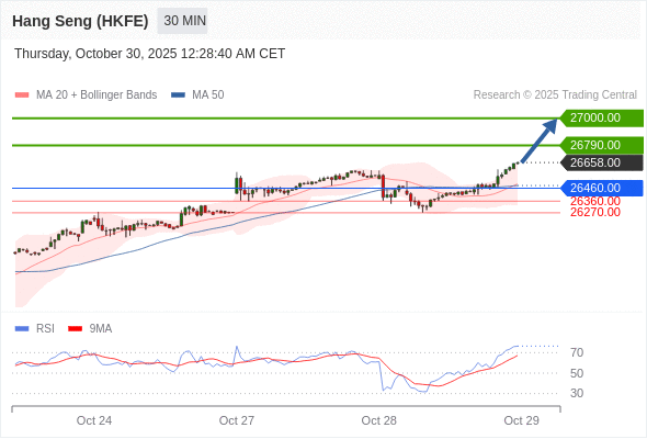 在 26460.00 之上,看涨,目标价位为 26790.00 ,然后为 27000.00 。