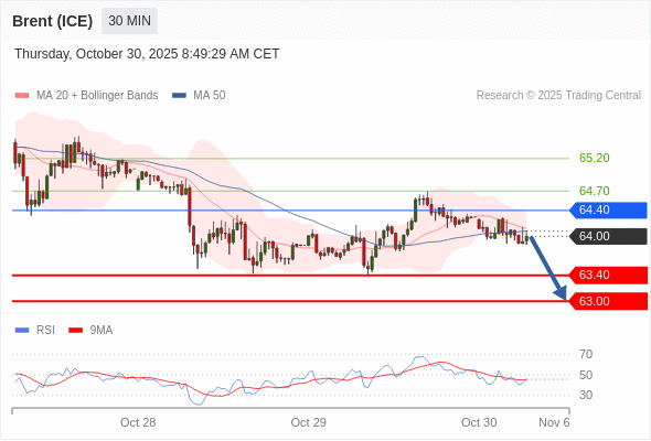 在 64.40 之下,看跌,目标价位为 63.40 ,然后为 63.00 。