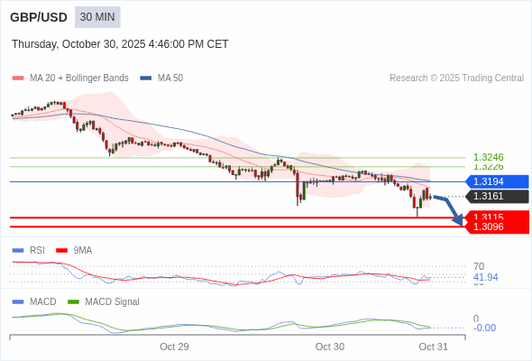 英镑/美元 当日内 : 看跌,在 1.3194 之下。