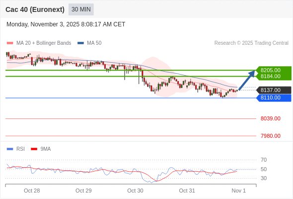 在 8110.00 之上,看涨,目标价位为 8184.00 ,然后为 8205.00 。