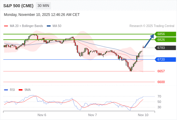 在 6720 之上,看涨,目标价位为 6826 ,然后为 6856 。