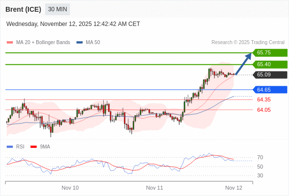 在 64.65 之上,看涨,目标价位为 65.40 ,然后为 65.75 。