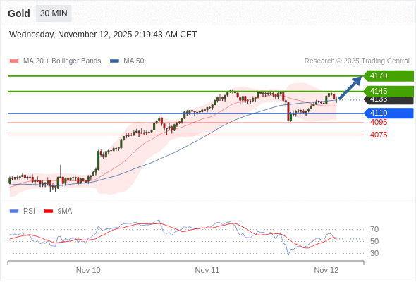 在 4110 之上,看涨,目标价位为 4145 ,然后为 4170 。