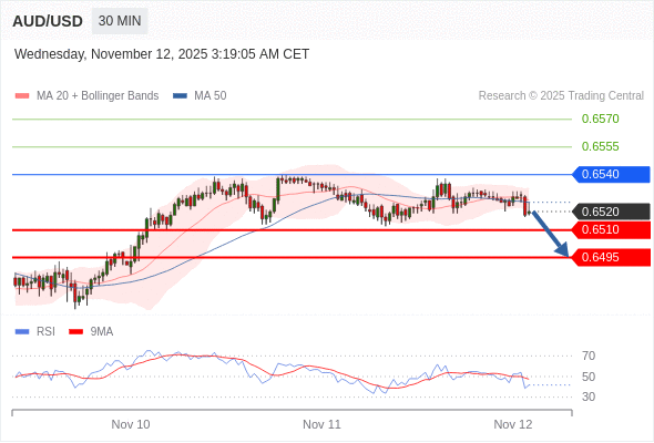 在 0.6540 之下,看跌,目标价位为 0.6510 ,然后为 0.6495 。