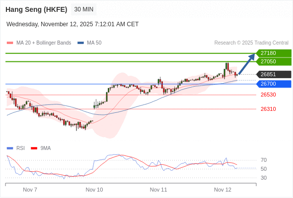 在 26700 之上,看涨,目标价位为 27050 ,然后为 27180 。