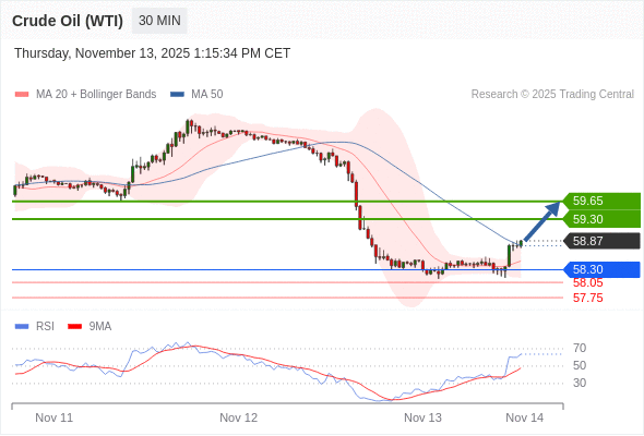 在 58.30 之上,看涨,目标价位为 59.30 ,然后为 59.65 。