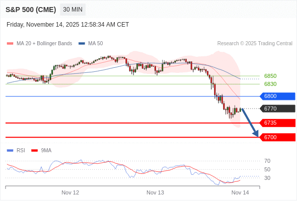 在 6800 之下,看跌,目标价位为 6735 ,然后为 6700 。