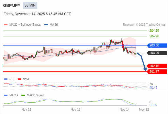 交易策略: 看跌,在 203.60 之下。