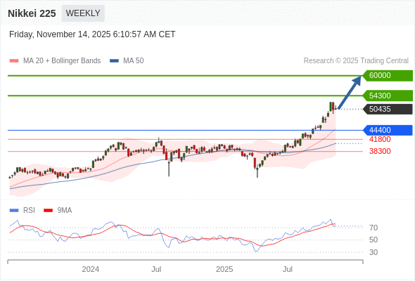 Nikkei 225 中期: 新一轮上升。