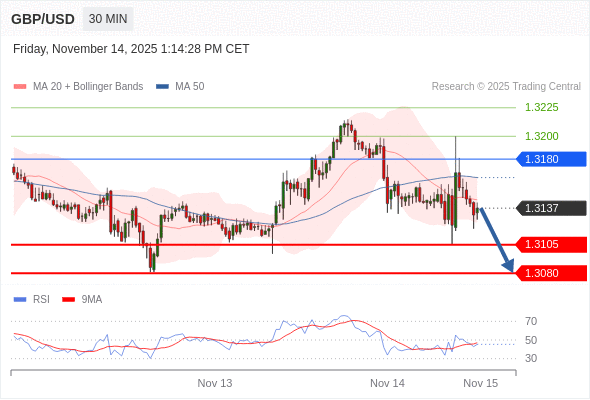 交易策略: 在 1.3180 之下,看跌,目标价位为 1.3105 ,然后为 1.3080 。