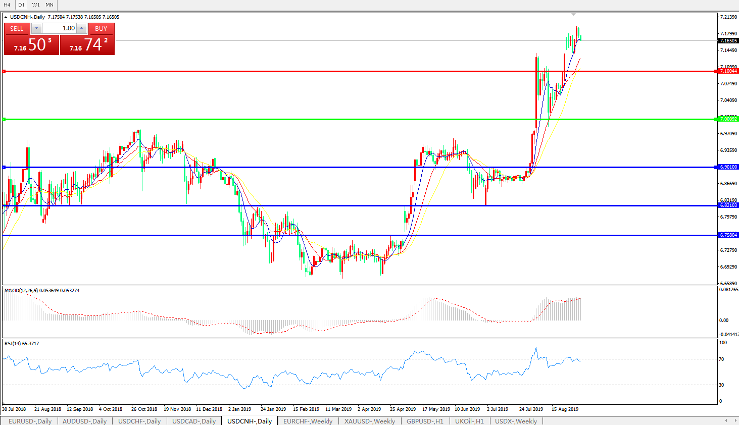 美元兑人民币USDCNH    日线图: