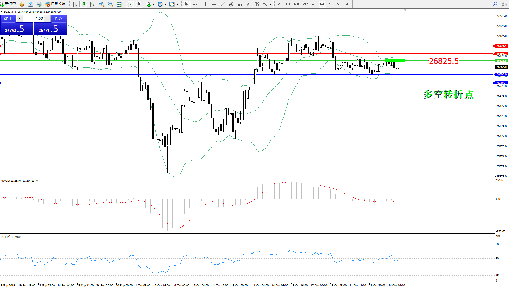 道琼斯指数10月24日(周四)收盘下跌28.70点,跌幅0.11%,报26805.26点。因美国疲弱经济数据提升市场对美联储将再次降息的预期,美联储今年已两次降息,目前投资者认为下周联储决策者举行会议时将再次调低借贷成本。全球各国央行都面临着越来越大的压力,要求它们给予疲弱经济体货币政策支持,因易争端对贸易和企业信心产生影响。