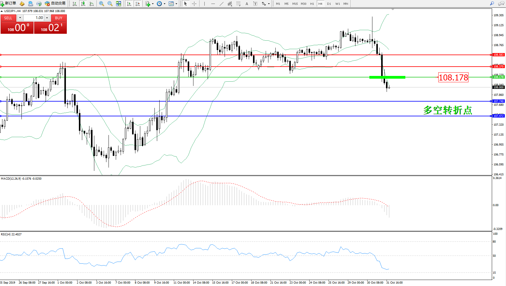 交易策略:108.178下方看跌,目标107.740107.472
