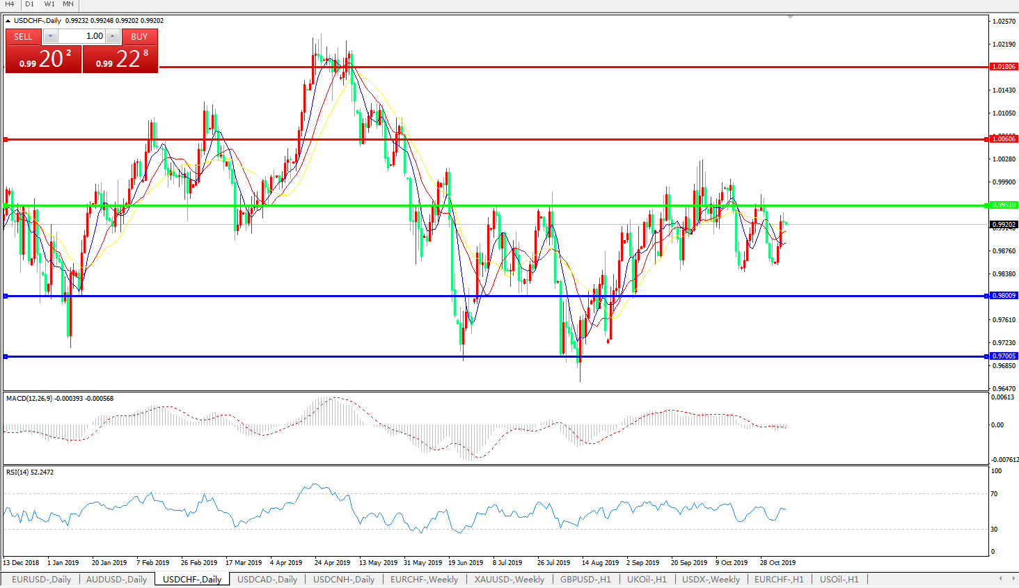 美元指数在周三亚洲时段高位震荡,此前上攻98关口再度遇阻,汇价因而转向横盘蓄势,但仍维持了强势形态。本周以来,全球贸易局势的持续好转对美元汇价起到了推升作用,但之后进一步的上行仍需“实锤”消息落地的推动; 除了贸易利多之外,美元主要对手盘欧元的疲软也带动美指走强。在上周美联储利率“三联降”之后,市场目光转向了欧洲央行在新行长拉加德上任之后的政策走向。对欧洲央行宽松预期的加码,连同大家对德国政府财政宽松预期的进一步失望,也推动了欧元汇价持续走低; 而此前,美元指数两度上攻98关口均遇阻,也显示趋势阻力依旧强劲,且美联储年内加息的预期仍未真正消除。此时,市场就将期待更多基本面经济数据来进一步带动行情,并同时继续对全面贸易走向予以密切留意。