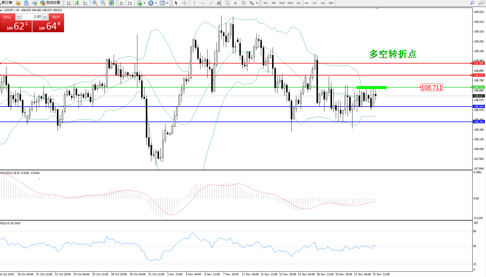 交易策略:108.711下方看跌,目标108.504108.341