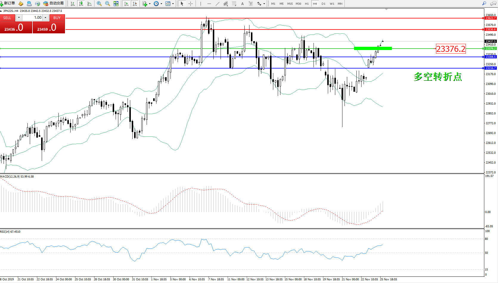 日经225指数11月25日(周一)收盘上涨168.12点,涨幅0.73%,报23281.00点。IMF新当选总裁格奥尔基耶娃:日本需要在金融行业进行监管,以抑制风险,安倍经济学作为基本战略是健全的,但日本还需要更多措施,日本通缩的风险已经有所消退,日本央行的宽松立场需要继续, 通货紧缩是日本过去的事,日本的货币政策目标是可实现的,日本有更多的空间,不是立即而是随着时间的推移,在人口老龄化的资金成本方面,更多地依赖消费税,逐步提高消费税可以帮助日本应对人口老龄化问题,日本逐步提高消费税有助于财政健康,消费税是相对公平且容易实现的,日本实施积极财政刺激措施,并将增长率维持在IMF预期、甚至更高一点水平的可能性很大,支持日本2%的通胀目标,低利率和人口萎缩给地区银行带来了额外的负担,日本央行也意识到了这一点.
