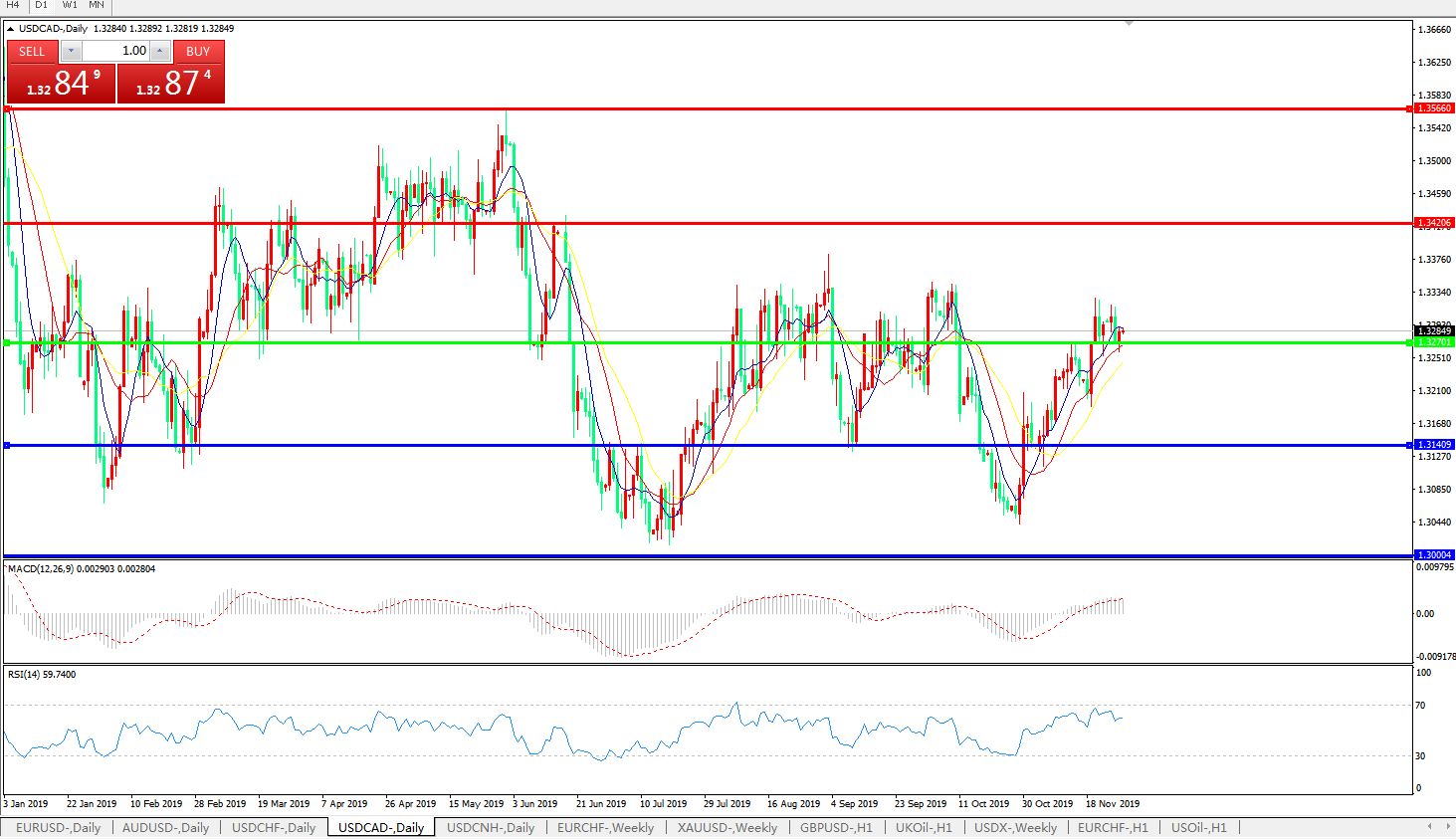 技术面简析:日线图均线维持攻势,汇价维持在多空转折区域整理,MACD穿越0轴且量能维持放量迹象,RSI震荡走低,短期汇价需关注1.3270关口争夺,等待汇价整理完毕选择方向。