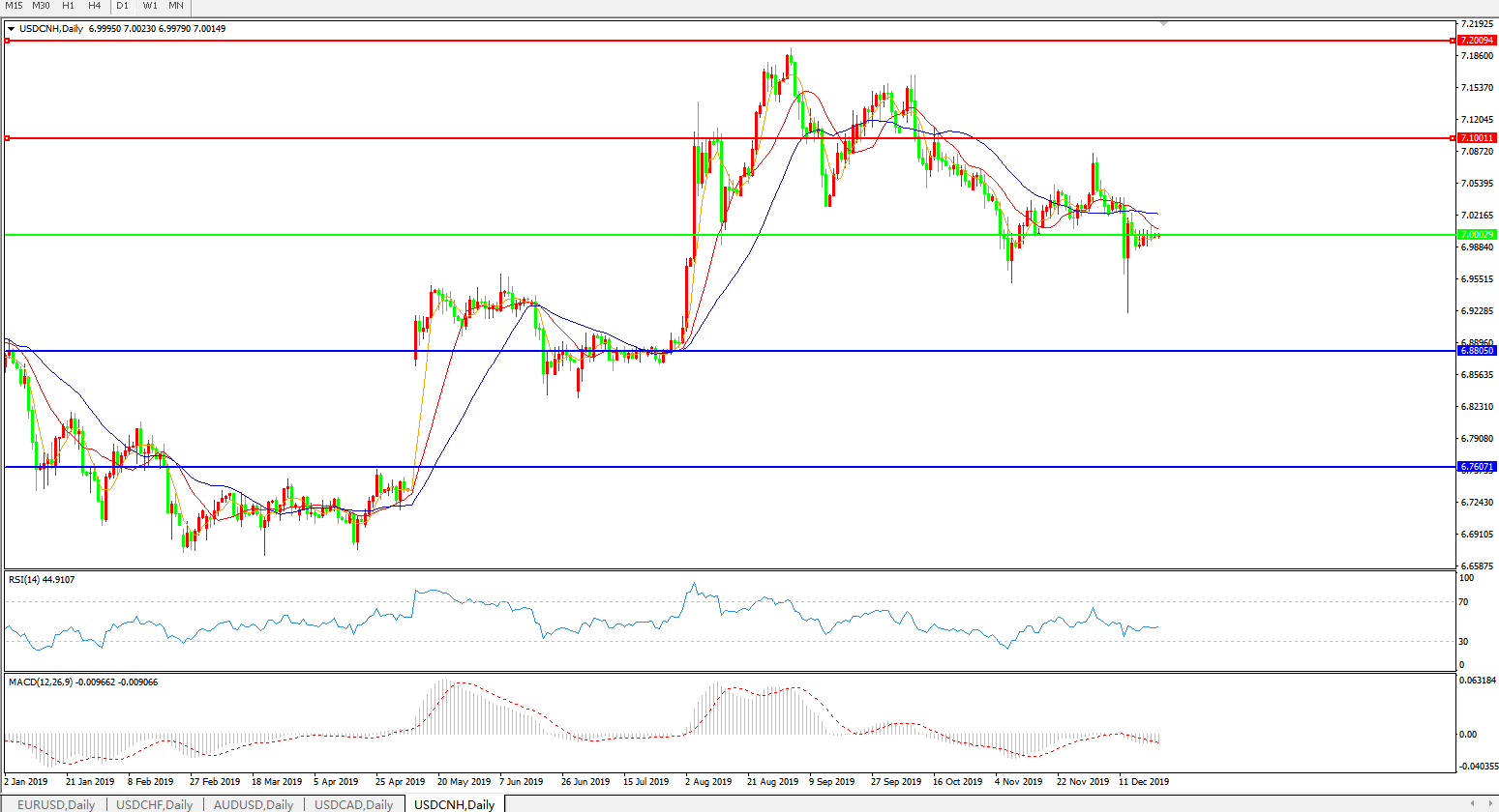 美元兑人民币USDCNH    日线图: