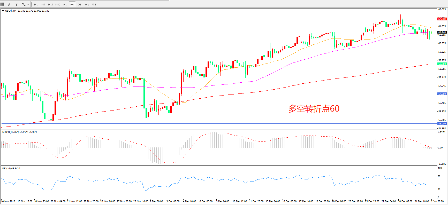 周四(1月2日),中东紧张局势令伊拉克原油供应面临风险,且有迹象显示中美贸易关系有所改善,这为油价提供了有效支撑,美国WTI 原油收涨 0.2%,报61.18美元/桶。美国能源信息署(EIA)的官方数据原定于周三发布,但因新年假期推迟两天至今天发布,务必重点关注。