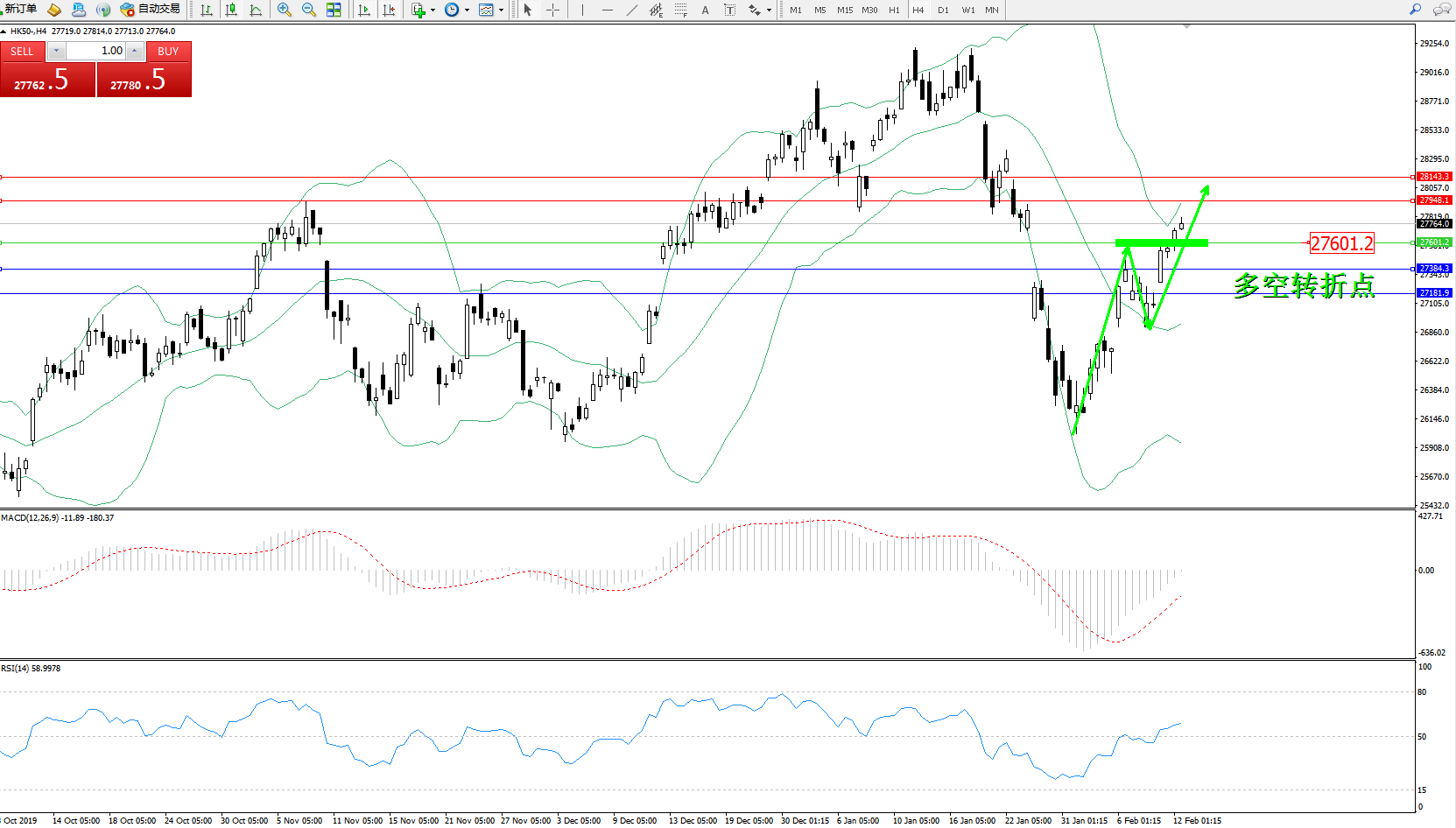香港恒生指数212日(周三)收盘上涨239.78点,涨幅0.87%,报27823.66点;股市场延续反弹,主要股指震荡走高。恒指午后冲涨至1%,行业板块集体狂欢,近乎全部上涨。全国新型肺炎治愈比例达10.6%,疫情影响持续下降,市场风险偏好逐步回升。主板全日成交1122.34亿港元,港股通净流入63.06亿港元。全球景气周期可能逐步见底,流动性整体仍然宽松,资金流入股市的趋势仍在继续,市场整体估值并不高,港股估值相对更具吸引力。疫情对市场的冲击短暂。长线资金正在趁回调积极布局,疫情引发市场对于企业线上业务的关注,线上业务多的个股在疫情期间表现抗跌。