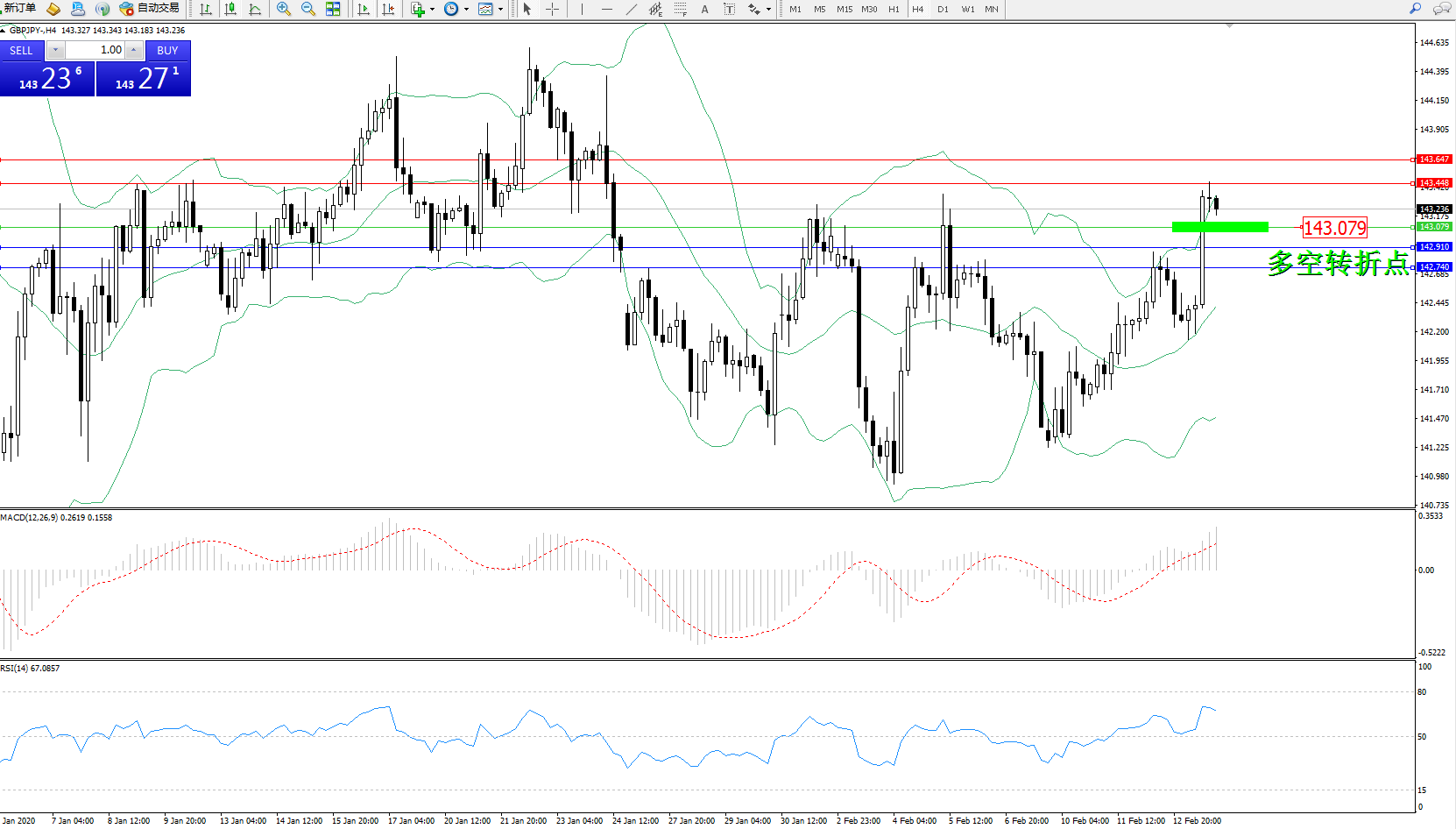 英镑兑日元现报143.24,涨0.40%;英国经济将以足够快的速度增长,使英国央行得以在今年避免降息,从而在年底前帮助提振英经济。其部分原因是投资者已经下了重注,认为英国央行将在2020年将利率下调至0.50%212日,隔夜指数掉期市场的定价暗示,英国1217日的利率为0.48%,表明投资者认为英国2020年降息是必然的。若脱欧出现进展,导致2021年前后英国与欧盟未来贸易关系的不确定性进一步减弱,英国央行实际上可能在2021年某个阶段加息。